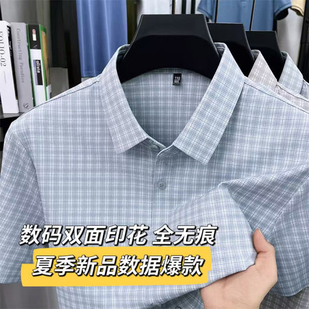 辰野电商&1027数据爆款格子数码印花无痕短袖衬衫